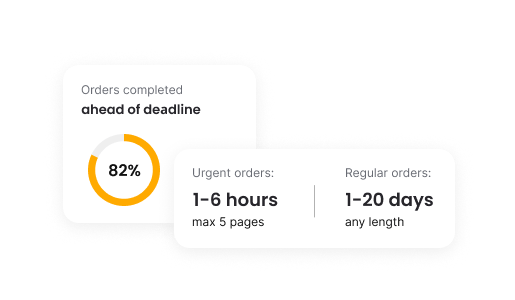 Once you hire paper writing service, you are waiting for quick and A-grade-worthy assistance, even on the same day. We understand it and offer ASAP solutions to all your academic issues without compromising their quality. Even if you give us one hour for a short assignment, we are ready to tackle it.